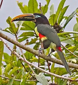 El tratamiento taxonómico de este listado (designación y secuencia de órdenes, familias y especies) y la nomenclatura (nombres científicos) siguen la clasificación establecida por el Comité de Clasificación de Sudamérica (SACC).[4] Los nombres vernáculos en castellano fueron tomados de Mazar Barnett & Pearman (2001)[5] y Pearman & Areta (2020),[6] incluyendo el cambio del epíteto «común» propuesto por Gallegos et al. (2020)[7]