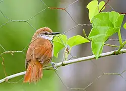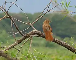 - ↑ a b Cravino, J.; Claramunt, S, (2007). «First records of Red-eyed Thornbird Phacellodomus erythrophthalmus ferrugineigula and Pale-breasted Thrush Turdus leucomelas for Uruguay». Bulletin of the British Ornithologists´ Club (en inglés) 127 (4): 327-329.