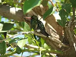 - ↑ BirdLife International (2016). «Chlorostilbon lucidus». Lista Roja de especies amenazadas de la UICN 2022-2 (en inglés). ISSN 2307-8235.