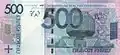 | 500 Rublos | Palacio de la Cultura de Minsk | Marrón | 74 x 150 mm |
