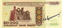 | 50.000 Rublos | Castillo de Mir en la Provincia de Goradnia | Azul | 74 x 150 mm |