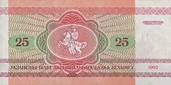 | 20 Rublos | Banco Nacional de Bielorrusia | Amarillo | 69 x 150 mm |