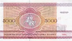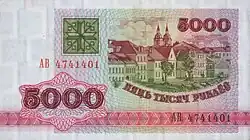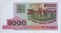 | 5.000 Rublos | Barrio del Trayetskaye Pradmyestsye de Minsk | Rosa |