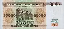 | 20.000 Rublos | Palacio de Rumiancev y Paskevich en la ciudad de Gómel | Gris | 74 x 150 mm |