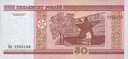 | 50 Rublos | Castillo de Mir | Verde | 72 x 147 mm |