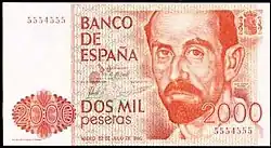 2000 pesetas Juan Ramón Jiménez Rojo 80 x 147 mm