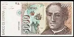 • 5000 pesetas (Emisión del 1me="no circuló"></ref>