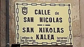 Rotulo de la calle Compañía, antigua Englantina, en la NavarreríaRótulo de la calle San Nicolás, muestra el antiguo nombre de Tornerías