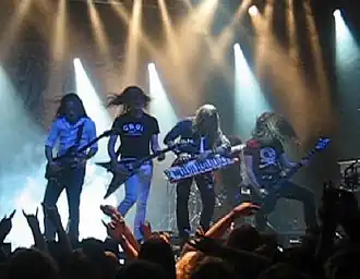 - ↑ a b c McWhertor, Michael (5 de agosto de 2008). «Guitar Hero III Gets Eyeliner Pack Thursday» (en inglés). Kotaku. Consultado el 8 de julio de 2011.