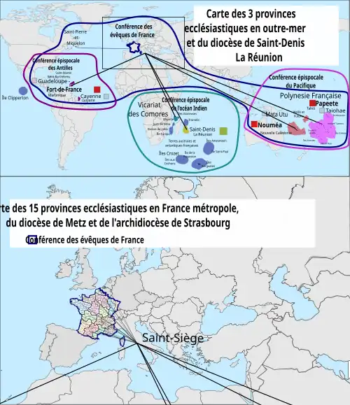 Las iglesias particulares que tiene su sede en Francia se distribuyen de la siguiente manera: