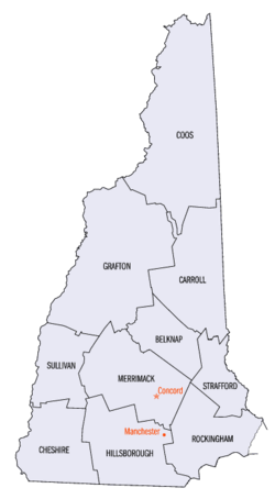 - ↑ «New Hampshire Counties». New Hampshire Almanac. Consultado el 11 de diciembre de 2010.