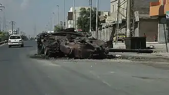 A partir del 5 de junio, el EIIL se apoderó de franjas de territorio en Irak además de armas pesadas y equipo del ejército iraquí , algunos de los cuales trajeron a Siria. Los ataques del gobierno apuntaron a las bases del EIIL en Raqa y Al-Hasakah en coordinación con una contraofensiva del ejército iraquí.[231] El 14 de junio, las fuerzas del gobierno retomaron la ciudad de Kessab, en el norte de la provincia de Latakia , mientras que los rebeldes tomaron el control Tall al-Gomo cerca de la ciudad de Nawa en la provincia de Daraa , y regresaron a la zona de Qalamoun .[232][233]