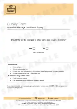 - ↑ «Australia vota a favor del matrimonio homosexual en una encuesta nacional que abre la puerta a su legalización». RTVE. 15 de noviembre de 2017. Archivado desde el original el 15 de noviembre de 2017. Consultado el 12 de octubre de 2022.