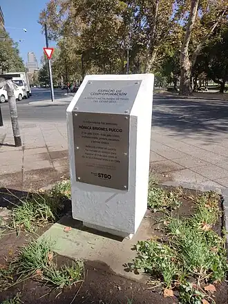 - ↑ «Hito: inauguran en el centro de Santiago una placa en memoria de Mónica Briones y de las víctimas del lesbo-odio». Movilh. 13 de marzo de 2025. Archivado desde el original el 13 de marzo de 2025. Consultado el 14 de marzo de 2025.