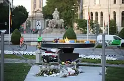 Monumento a los fallecidos por COVID-19 en Zaragoza (15 de octubre de 2021).Mediodía: 4.984.386 contagiados, 86.974 muertos, Nivel de Riesgo Alto, 40,85 Incidencia Acumulada, 1.152 por cada 100.000 habitantes con una positividad del 2,2% y 1.835 hospitalizados, 443 de ellos en UCI