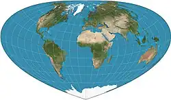 1600 (c.) | Proyección sinusoidal = Sanson-Flamsteed = Mercator equiárea |