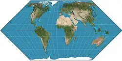 1932 | Proyección de Wagner VI | K.H. Wagner | Pseudocilíndrica | Compromiso | Equivalente a Kavrayskiy VII verticalmente comprimido por un factor de . |