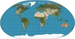 | 2011 | Proyección Natural Earth | Tom Patterson | Pseudocilíndrica | Compromiso | Computado por interpolación de valores tabulados. | |