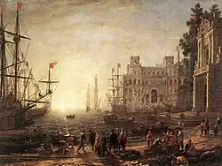 | Puerto | 1637 | Óleo sobre lienzo | 74 x 99 cm | Colección duque de Northumberland, Alnwick Castle, Alnwick, Northumberland | Realizado para el papa Urbano VIII. Pendant del anterior. En 1639 realizó otra versión, Puesta de sol en un puerto (Museo del Louvre, París).[22] | 14 | |