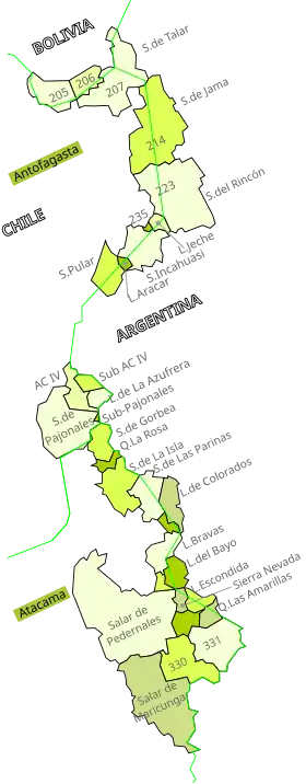 | Guachalajte (Salar de Jama) | 23º 10’ | Vega | Sucesivo a Chile | Salar de Jama | |