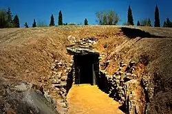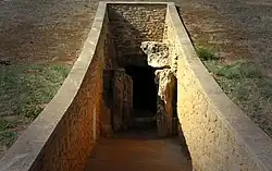 Se trata de un tholos con un largo corredor que termina con una cámara circular al fondo.