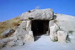 Estructura tumular que cobijaba, al menos, dos enterramientos pertenecientes al horizonte cultural calcolítico.[3]