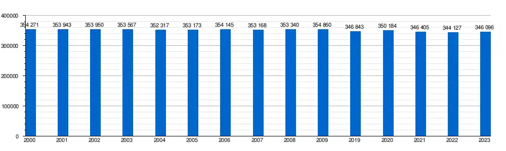| Gráfica de evolución demográfica de Bilbao[3] entre 2000 y 2023 |