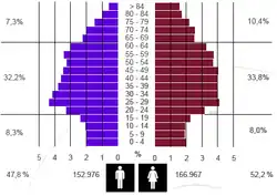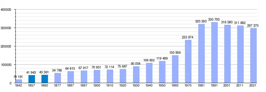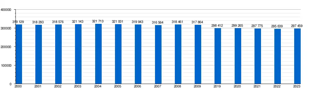 | Población | 233 974 | 285 960 | 320 281 | 327 452 | 330 700 | 319.805 | 318 293 | 321 713 | 319 943 | 316 564 | 315 522 | 313 437[12] | ||