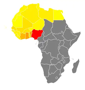 - Conferencia Episcopal Regional del África Occidental Francófona, que comprende Benín, Burkina Faso, Costa de Marfil, Guinea, Mali, Níger y Togo, además de Guinea-Bissau, Mauritania y Senegal como miembros asociados.