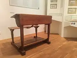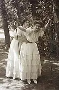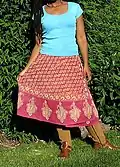 ↑«Las señoritas del uniforme a rayas», artículo en el diario La Nación (Costa Rica): «El doblez de la enagua azul se arrebuja en el tejido y a su vez esconde una levísima costura».