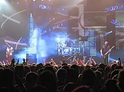 ![]() Muse en Toronto en agosto de 2007. De izquierda a derecha: Matt Bellamy, Dom Howard y Chris Wolstenholme. | ||