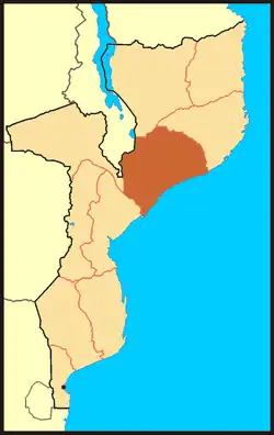 La provincia de Inhambane limita al norte con Manica y Sofala, al este y al sur con el Océano Índico, y al oeste con Gaza. La componen doce distritos.
