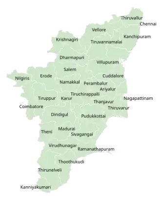 - ↑ «Districts of Tamil Nadu». Government of Tamil Nadu. Consultado el 24 de enero de 2014.