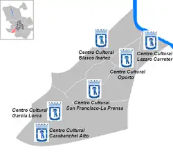 Carabanchel es un distrito de la ciudad de Madrid que contiene numerosos equipamientos de tipo administrativo, educativo, sanitario y deportivo.