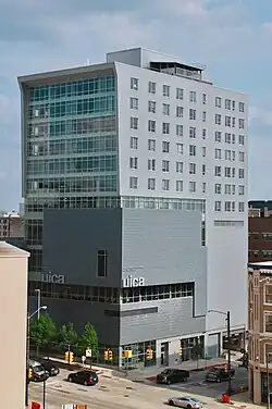 - ↑ Harger, Jim (28 de junio de 2017). «50 years later, parking lot will give way to $72M office and hotel tower». MLive.com. Consultado el 1 de octubre de 2017.