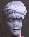 - Pretendientes que fueron proclamados o reconocidos por otro emperador legítimo son considerados legítimos.[9][12] Los co-emperadores menores, es decir, aquellos que nunca ejercieron poder real, no siempre son considerados como "emperadores plenos".[13][14] La práctica de proclamar niños emperadores comenzaría a partir el siglo III y se estandarizaría definitivamente durante el periodo bizantino, con la introducción de los títulos basileus y autocrátor. Los coemperadores menores son completamente excluidos en las listas de gobernantes bizantinos,[15] por lo que el mismo criterio se aplica aquí.