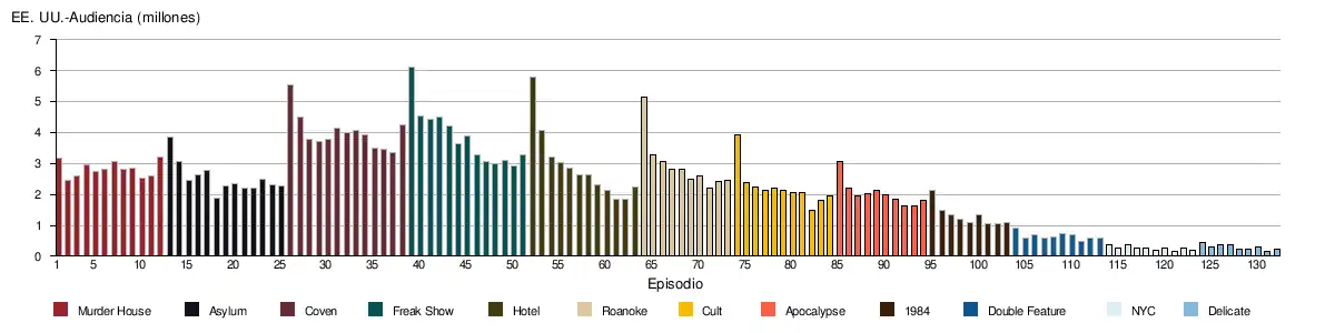 Para la sexta temporada, ver «American Horror Story: Roanoke (Season Six) Ratings». TV Series Finale (en inglés). 17 de noviembre de 2016. Consultado el 26 de enero de 2019.