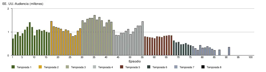 Para la sexta temporada, ver «Outlander: Season Six Ratings». TV Series Finale (en inglés). 8 de marzo de 2022. Consultado el 8 de marzo de 2022.