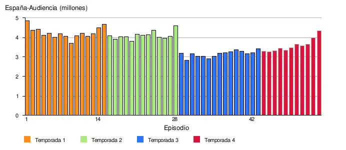 | Temporadas | Capítulos | Estreno | Final | Audiencia media | |||