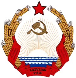 Los emblemas de las repúblicas constituyentes de la Unión de Repúblicas Socialistas Soviéticas, que estaban basados en el emblema nacional de la Unión Soviética presentaron predominantemente la hoz y el martillo y la estrella roja que simboliza el comunismo, como también un sol naciente (en el caso de la RSS de Letonia sería una puesta de sol ya que el mar que aparece sería el Báltico situado al oeste de Letonia) rodeado por una corona de trigo (excepto en el emblema de la RSS Carelo-Finesa, el cual tiene una corona de centeno). El lema de la Unión Soviética, ¡Proletarios de todos los países, uníos! tanto en el idioma ruso como también en el de la respectiva república era también colocado en cada uno de ellos. Además de los ornamentos repetitivos, los emblemas de muchas repúblicas soviéticas también incluían elementos característicos de sus paisajes locales, economías y culturas.