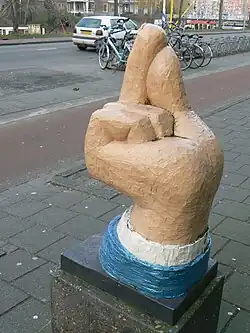 - ↑ La imagen del pescado fue adquirida en 2002. Permaneció durante cinco años a partir de 2003 en un garaje en el Westerhaven. Después de varias ubicaciones temporales, fue colocada en 2009 en la Oosterhaven .