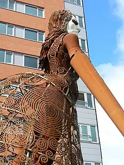 - ↑ La imagen de Miguel y el dragón fue encargado en 1883 por Willem Albert Scholten . Después de su muerte fue depositada en algún almacén. El nuevo propietario de la tienda dona la estatua en 1930 a la Asociación del Parque de la Ciudad (Groninga).