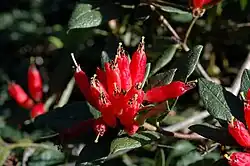- ↑ a b Goetsch, Loretta; Hall, Benjamin D. (July-September 2005). «The Molecular Systematics of Rhododendron (Ericaceae): A Phylogeny Based Upon RPB2 Gene Sequences». Systematic Botany (American Society of Plant Taxonomists) 30 (3): 616-626.