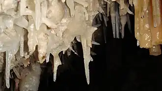 | Anemolito | Variedad de estalactita | Estas estalactitas se forman fuera de la vertical, probablemente debido a corrientes de aire.[4] |