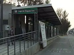 | Adolfo López Mateos | OR, E1, E2, E3 | Lago de Chapala | Palacio Municipal | 30 de abril de 2013 | Se ubica en Av. Chimalhuacán esquina con Av. Adolfo López Mateos, toma su nombre de la cercanía con esta última vialidad. Adolfo López Mateos fue un abogado y político mexicano que se desempeñó como el quincuagésimo séptimo Presidente de los Estados Unidos Mexicanos, ejerciendo como tal entre 1958 y 1964. Su símbolo representa el busto de Adolfo López Mateos estilizado. | ||
