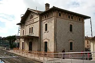 1917-1964 | Línea de Santañí | Ferrocarriles de Mallorca | Ubicada en el kilómetro 61,5 de la línea, era la estación terminal de la misma. Sus instalaciones eran muy completas, aunque no tan relevantes como la de Llucmajor. Disponía de un almacén, una cochera, una aguada, una plataforma giratoria, un edificio para el personal de tracción así como un edificio de viajeros como el de Campos, posteriormente rehabilitado como viviendas. Los excusados fueron demolidos y pese a la urbanización de la playa de vías, es la estación de la línea que más elementos originales conserva.[31] |