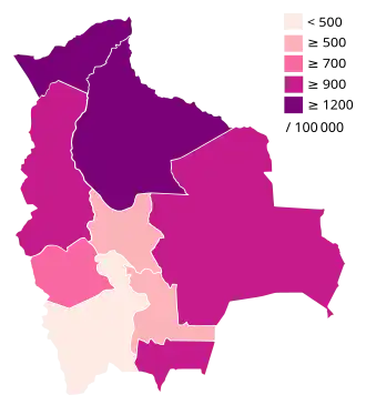 - ↑ «BOLIVIA: POBLACIÓN ESTIMADA Y PROYECTADA POR DEPARTAMENTO, SEGÚN AÑOS CALENDARIO, 2000-2025». www.ine.gob.bo. Consultado el 7 de julio de 2020.