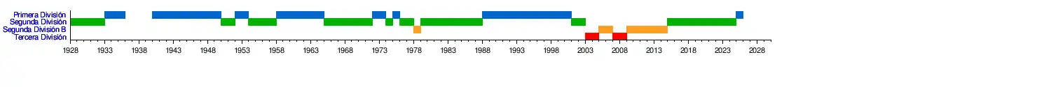 Nota: No se participa cuatro temporadas por la Guerra Civil, que destruye su Estadio (1936-1937 a 1939-1940)