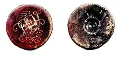 Inscripciones "5" y "1914" en una corona de laurel y abajo un triángulo. |
