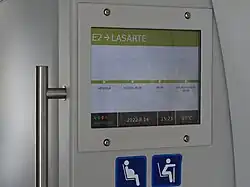 907 «Hendaia» en la estación de AmaraInterior de una unidad de la Serie 900Pantalla informativa de una unidad en la E2